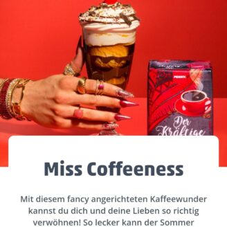 Hey Penny, ist das ein Diss oder ne Hommage?! Vergessen wir mal den Namen, das Bild, den verwendeten Kaffee und das Wording: Wäre Coffeeness ein Kaffee-Rezept, wären wir ganz sicher kein überladener Eiskaffee mit einer buchstäblichen Kirsche auf dem buchstäblichen Sahnehäubchen.